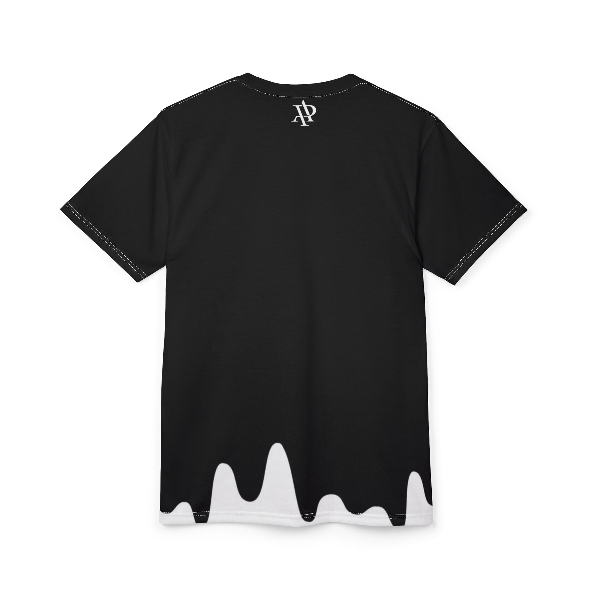 Black Drip Tee with Chain Print — 'AP' Chest Logo